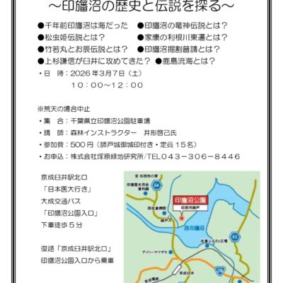 師戸城城址として保存された印旛沼公園において歴史セミナーを開催いたします。