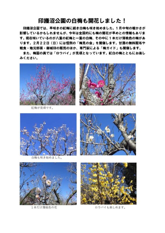 印旛沼公園の梅園にて恒例の梅見の会を開催いたします。