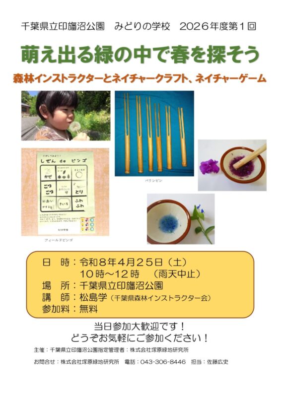 印旛沼公園にて2026年度 第1回みどりの学校を開催いたします。 皆様のご参加をお待ちしております。