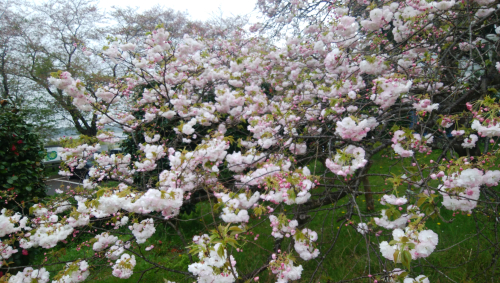 【印旛沼公園だより】ヤエザクラが花盛りです。 2023年4月6日 最終更新日時 : 2025年10月11日 スタッフ1 印旛沼公園では今まさにヤエザクラが花盛りです。 自由広場のポピュラーなカンザンだけでなく、芝生広場には白いヤエザクラ イチヨウがお出迎えしております。