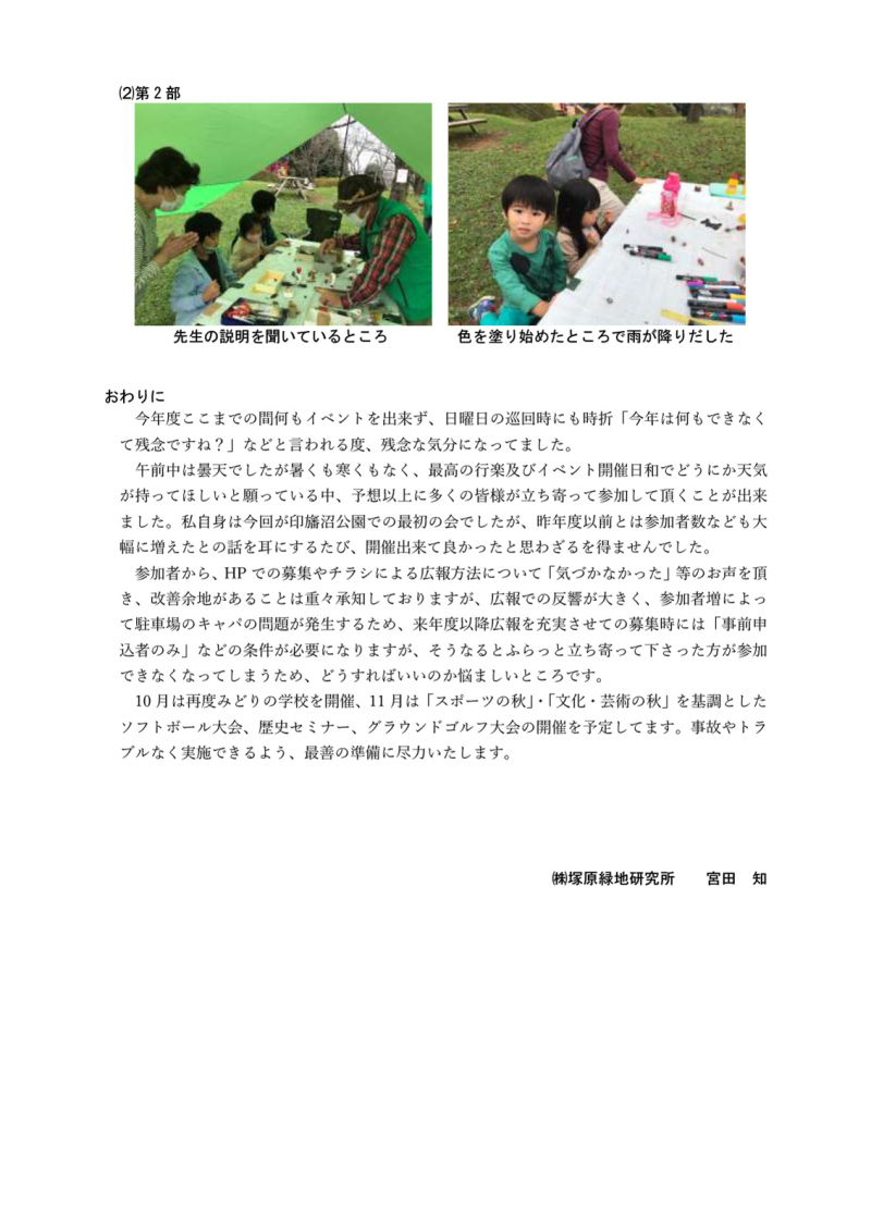 【報告】印旛沼公園 令和3年度 みどりの学校