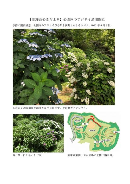 【印旛沼公園だより】公園内のアジサイ満開間近