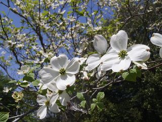 パーゴラ前のハナミズキの花が見ごろです(^-^)