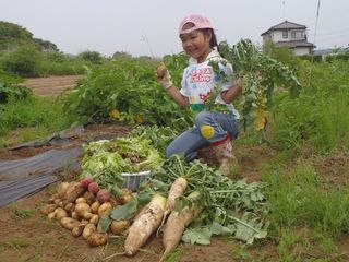とったどー!体験農園ではジャガイモ、ダイコン、サニーレタス、ラディッシュがたくさん収穫できました(^-^)