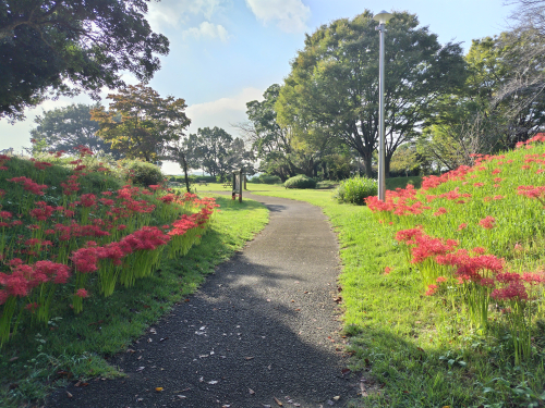 【印旛沼公園だより】ヒガンバナがはなざかりです。 2024年10月4日 最終更新日時 : 2025年10月2日 スタッフ1 印旛沼公園では今ヒガンバナがはなざかりです。 園内のどこに咲いているか探してみてください。