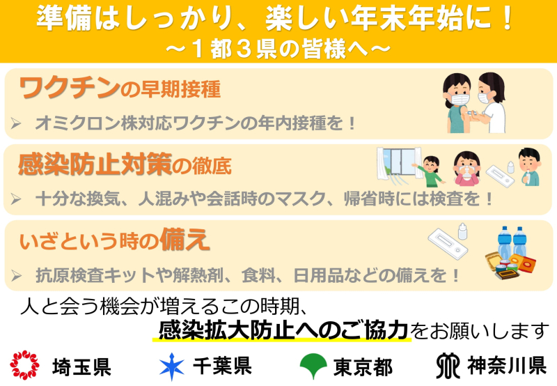 準備はしっかり、楽しい年末年始に!(一都三県共同メッセージ)