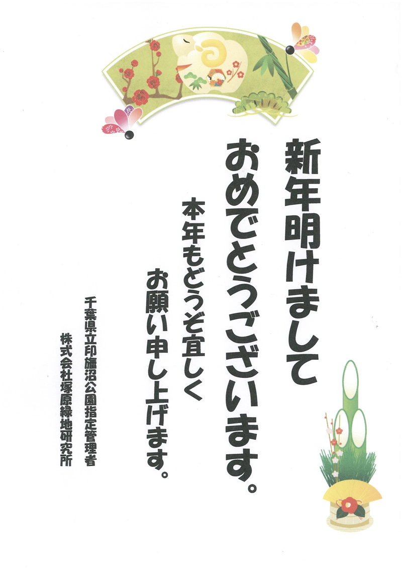新年明けましておめでとうございます 2015年1月1日 最終更新日時 : 2025年10月12日 スタッフ1 新年あけましておめでとうございます。 本年もどうぞ宜しくお願い申し上げます。 千葉県立印旛沼公園指定管理者株式会社塚原緑地研究所